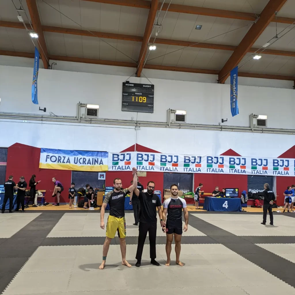 Enrico Marega, nelle cinture blu, ha iniziato il torneo vincendo il primo match per sottomissione, ma ha perso il secondo ai punti.